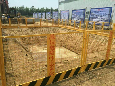 基坑護(hù)欄網(wǎng)是國家規(guī)定必須在施工現(xiàn)場安裝的,有效的防護(hù)隔離車輛人員掉入基坑。 基坑護(hù)欄網(wǎng)標(biāo)準(zhǔn): 1、開挖深度超過2m 及以上的基坑周邊必須安裝防護(hù)欄桿,防護(hù)欄桿的安裝應(yīng)符合規(guī)范要求; 2、基坑內(nèi)應(yīng)設(shè)置供施工人員上下的專用梯道。梯道應(yīng)設(shè)置扶手欄桿,梯道的寬度不應(yīng)小于1m,梯道搭設(shè)應(yīng)符合規(guī)范要求; 3、降水井口應(yīng)設(shè)置防護(hù)蓋板或圍欄,并應(yīng)設(shè)置明顯的警示標(biāo)志。 基坑護(hù)欄網(wǎng)規(guī)格: 網(wǎng)片:1300*2000mm 絲徑:4.0mm 網(wǎng)孔:25*25mm 邊框:30*30*1.5mm 鋼板:5.0mm